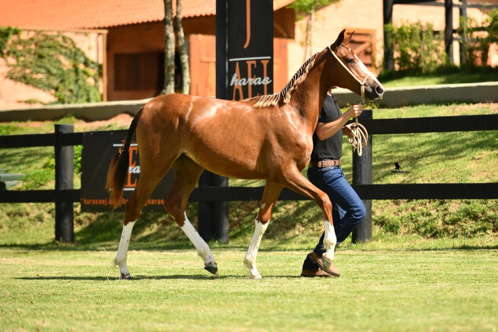 Potra baby do leilão, Q Bela é filha da Campeã Nacional Hungria do A.E.J no Grande Campeão Nacional e pai de Grande Campeão Nacional Quartzo da Santa Cecília.